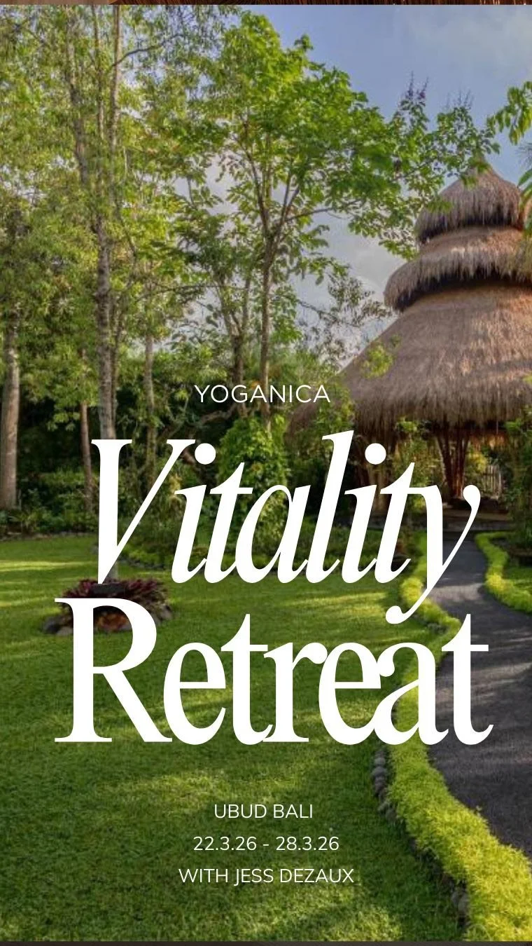 • 6 nights in a luxury eco pool/bath suite. • Daily three-course plant-based breakfast. • Daily three-course plant-based dinner • Daily yoga, Pilates, and fitness practice. • Sunrise rice-field run or guided walk. • Fire purification ceremony. • Ecstatic Dance ticket at the Yoga Barn. • Curated afternoon/evening practices following the daily yoga, including Yoga Nidra, Yin, and Breathwork. • 1.1 Coaching session with Jess